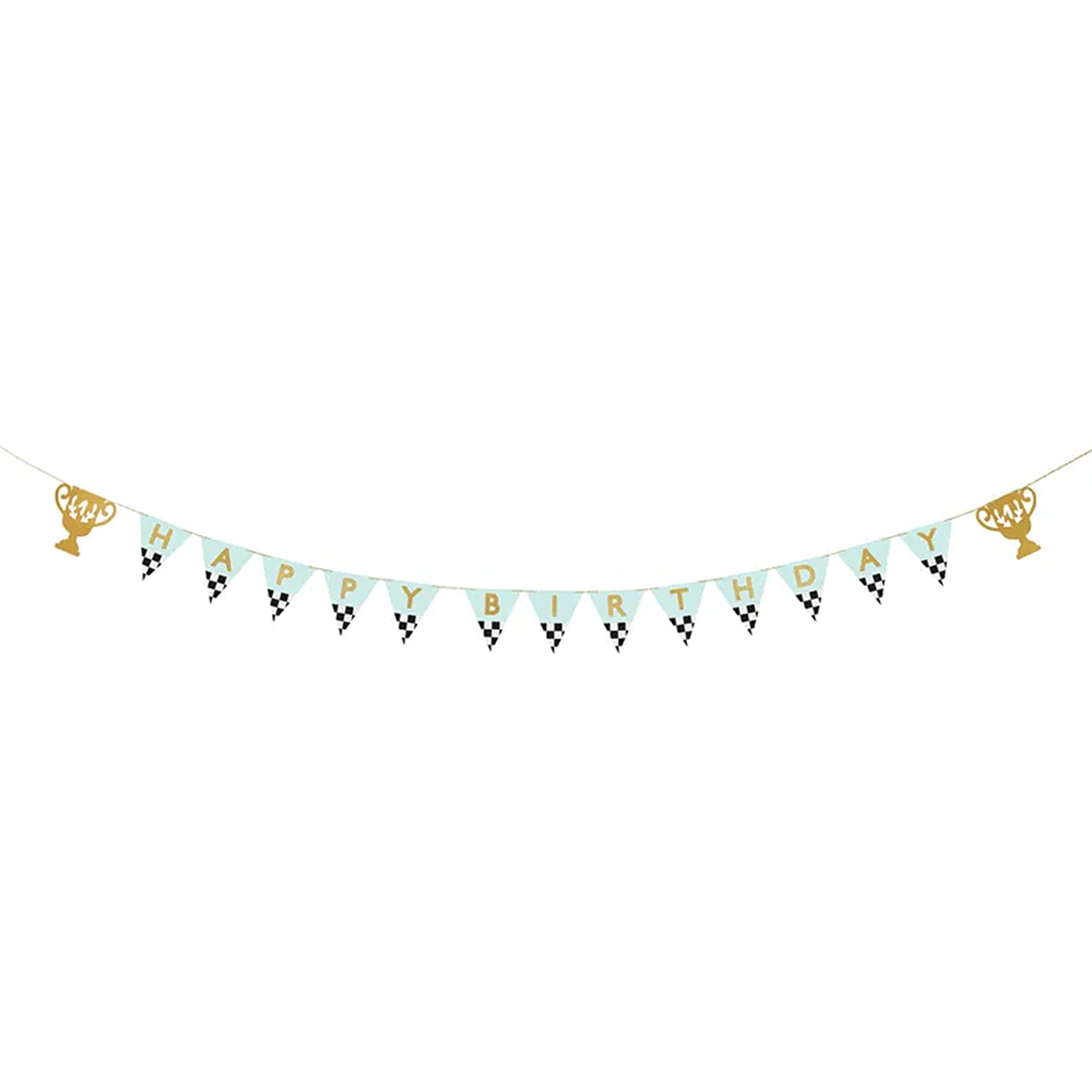 Girlang Happy Birthday Trofé är en girlang med texten Happy Birthday omringad av troféer. Girlangen sätts enkelt upp mellan två krokar på vilken vägg som helst. Perfekt på barnkalaset!
