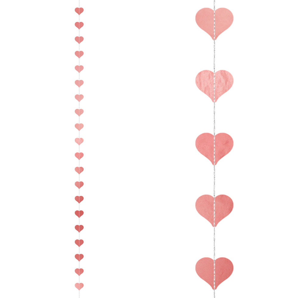Girlang Hjärtan Roseguld omfattar en 3 meter lång girlang med små hjärtan i roseguld. Tillverkad i papp.