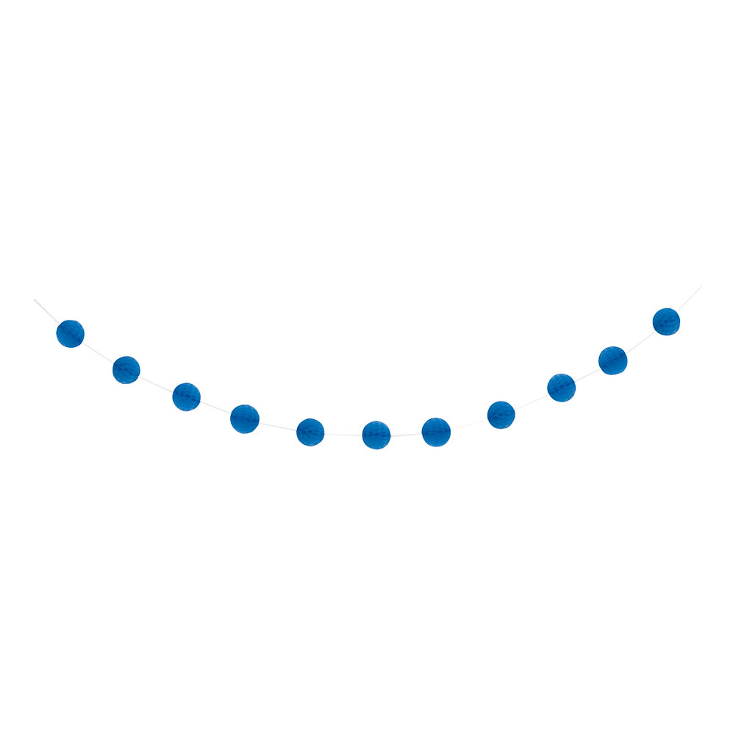 Girlang Honeycombs Blå är en girlang bestående av blåa bollar. Fin detalj på både inomhus och utomhusfesten.