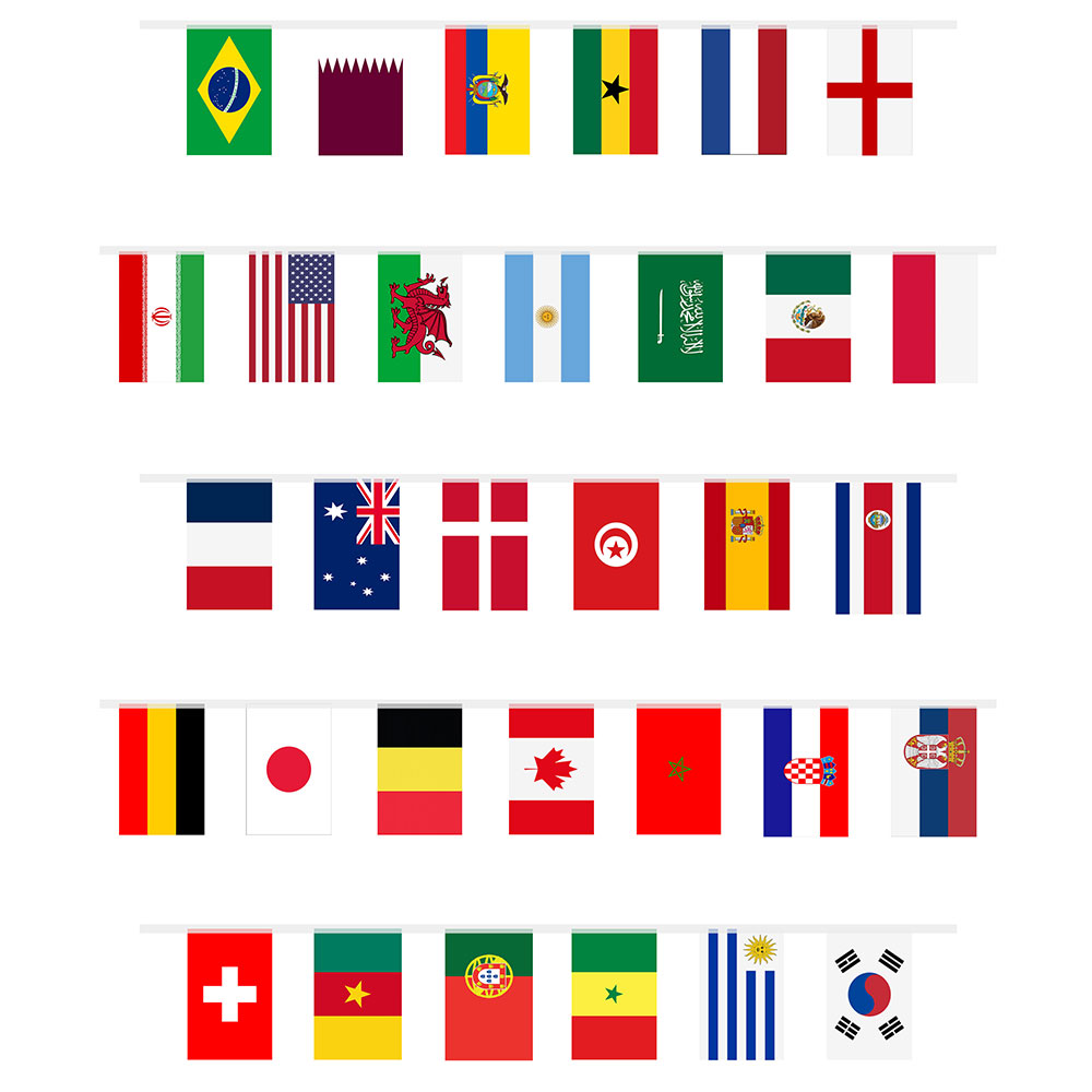 Häftig girlang med massor av flaggor från flera olika länder som helt klart sätter stämningen! En perfekt flaggirlang till exempelvis en VM-fest, OS-fest eller annat tävlingsevenemang där flera länder tävlar mot varandra. Dekorera med den hur du vill och matcha gärna med andra passande dekorationer för en komplett pyntning till firandet.