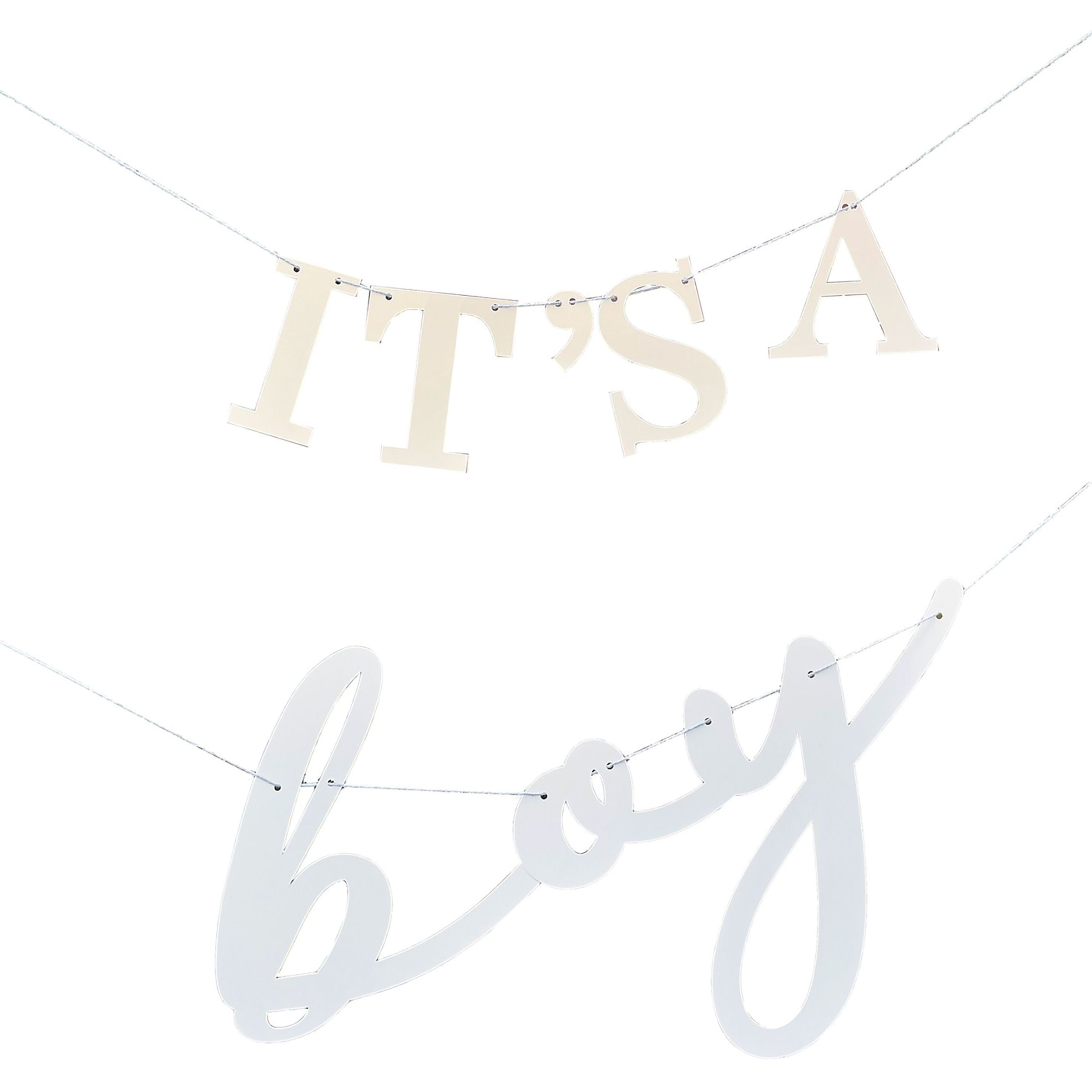 Gender reveal eller baby shower i görningen? Då ska det pyntas i allra högsta grad! Den här girlangen hänger du enkelt upp på lämpligt ställe bland ballonger och serpentiner för att tydlig visa att det är en liten pojk som snart kommer till världen!