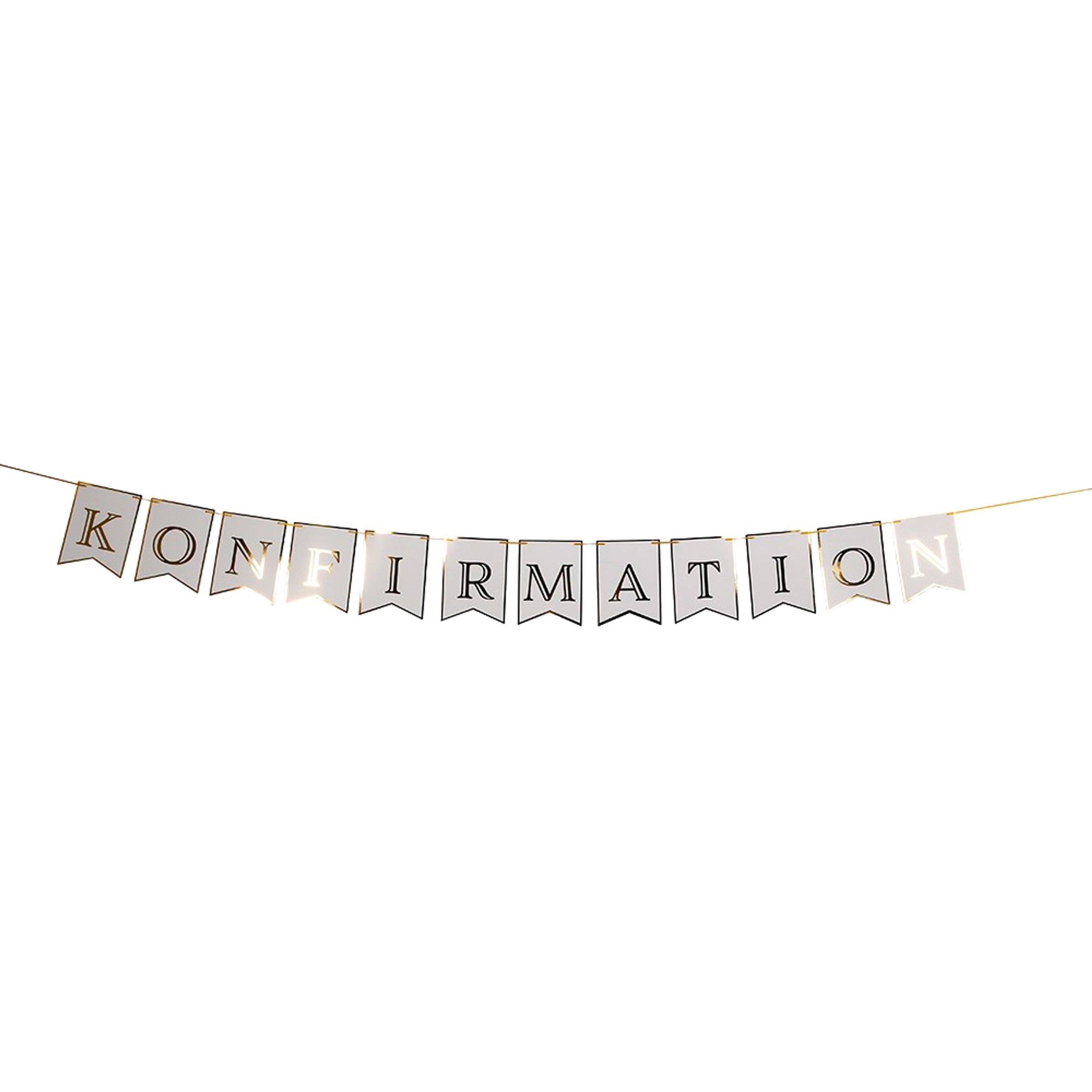 Girlang Konfirmation Vit/Guld är en festlig girlang i vitt och guld som passar utmärkt till konfirmationen. Girlangen hängs enkelt upp med en bit tejp eller liknande.