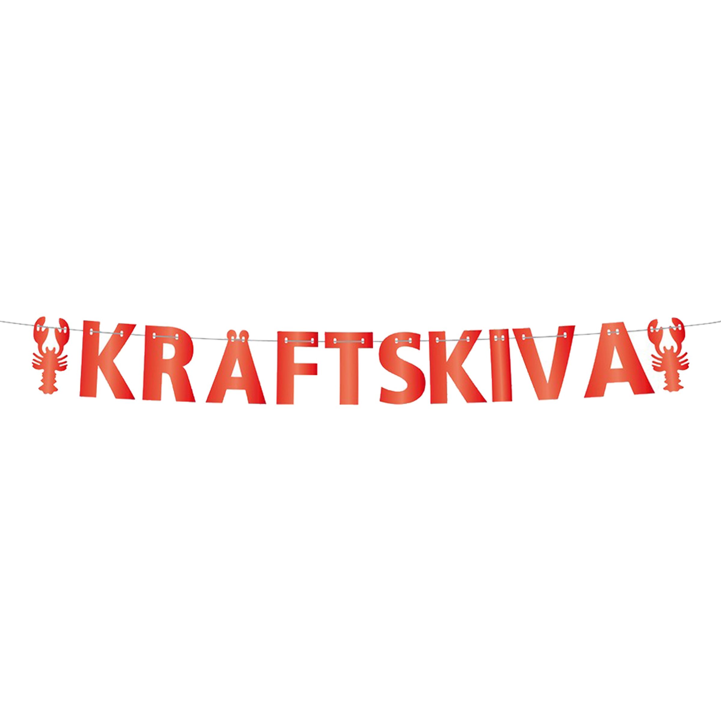 Exakt så här stavar man kräftskiva, och det ska gästerna bli varse under sommarens roligaste fest! Häng upp den här härliga girlangen och låt den dingla över skaldjur och västerbottenpaj när ni sjunger och skålar!