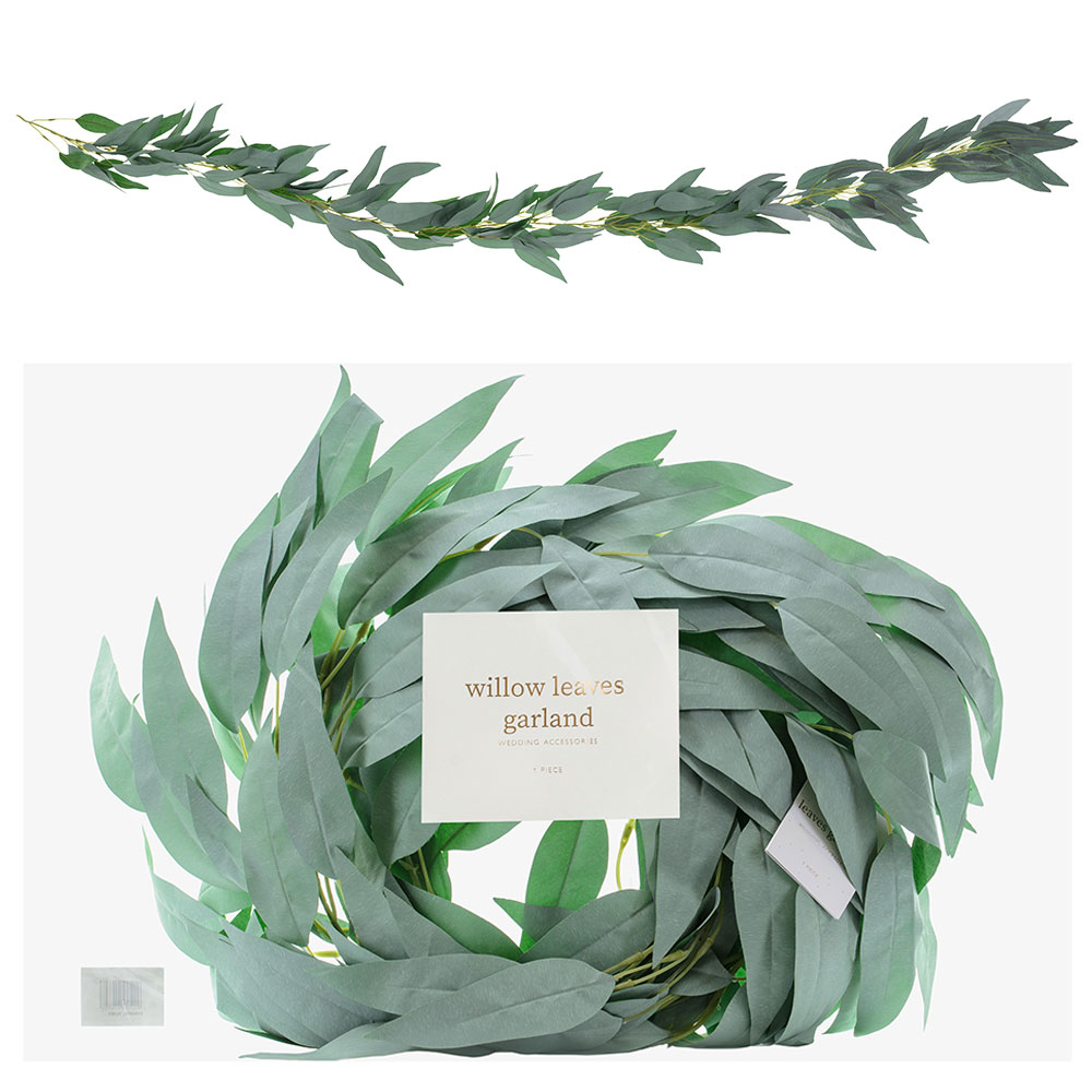 Girlang Löv Pilträd är den perfekta dekorationen för din förlovningsfest eller bröllop. Den vackra girlangen med löv ger en romantisk och rustik känsla till din festlokal. Pilträdet representerar styrka och stabilitet och är en symbol för äktenskapet. Använd den som en söt dekoration på borden eller häng upp den för att skapa en drömlik atmosfär. Din bröllopsdekoration är inte komplett utan Girlang Löv Pilträd.