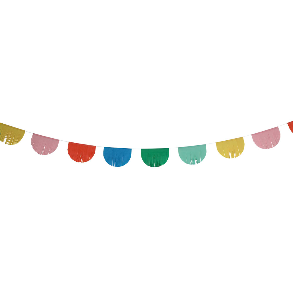 En härlig pappersgirlang med fransar, vågat mönster och retro färger som blir en utmärkt party dekoration till fest och kalas, ett riktigt snyggt pynt till sommar event och födelsedag, helt enkelt en superhärlig girlang i tunt fint papper som garanterat blir en uppskattad detalj på kommande tillställning.