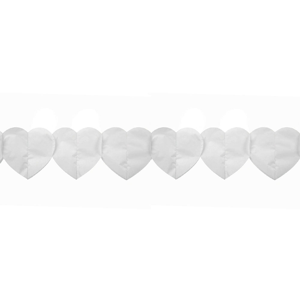Girlang med Hjärtan Vit omfattar en 6 meter lång hjärtgirlang med vita pappershjärtan. Hjärtana är ca 8 cm breda och 6,5 cm långa och hängs upp på ett vitt snöre.