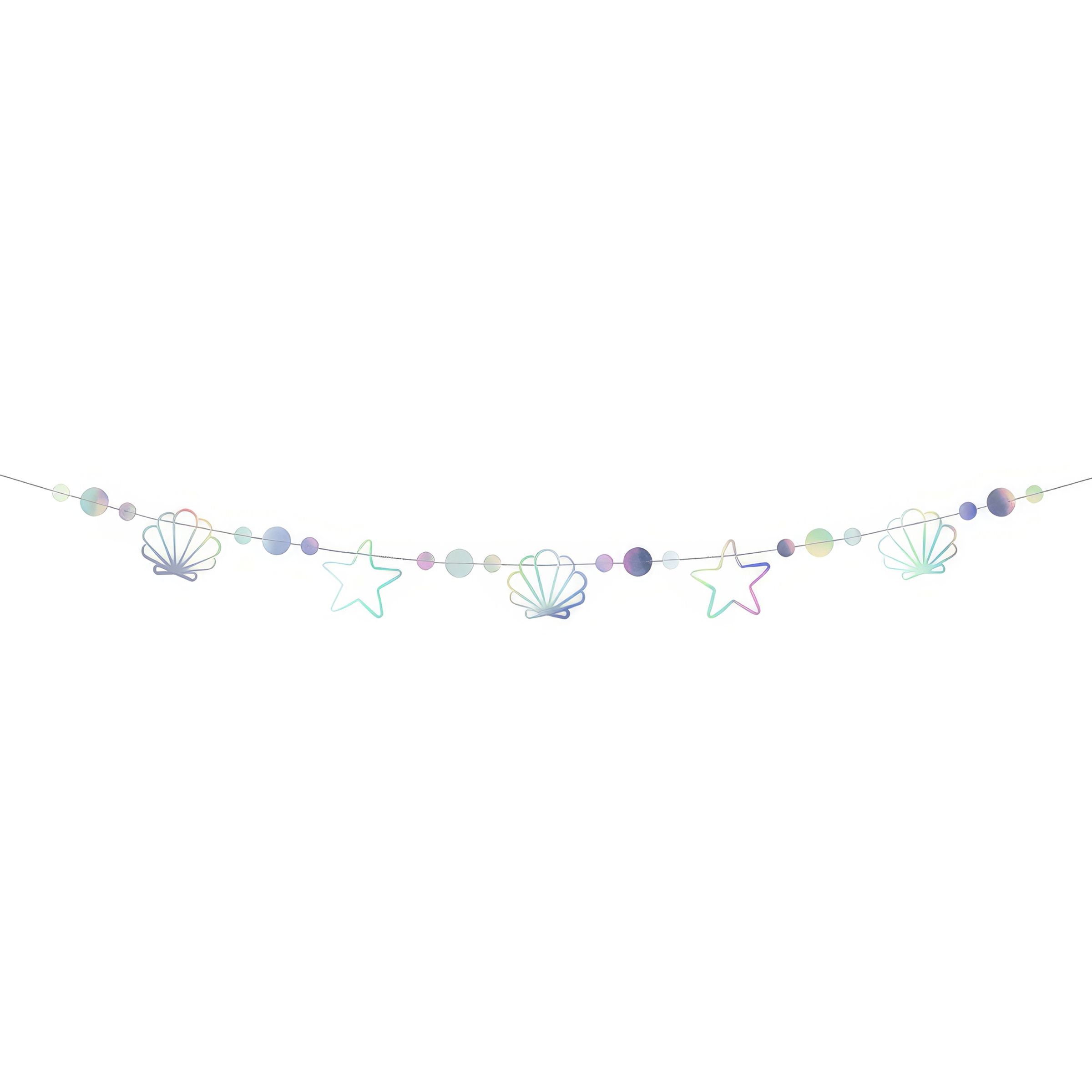 Girlang Mermaid Färgskimrande innehåller en girlang på 165 cm med snäckskal och sjöstjärnor i papper.
