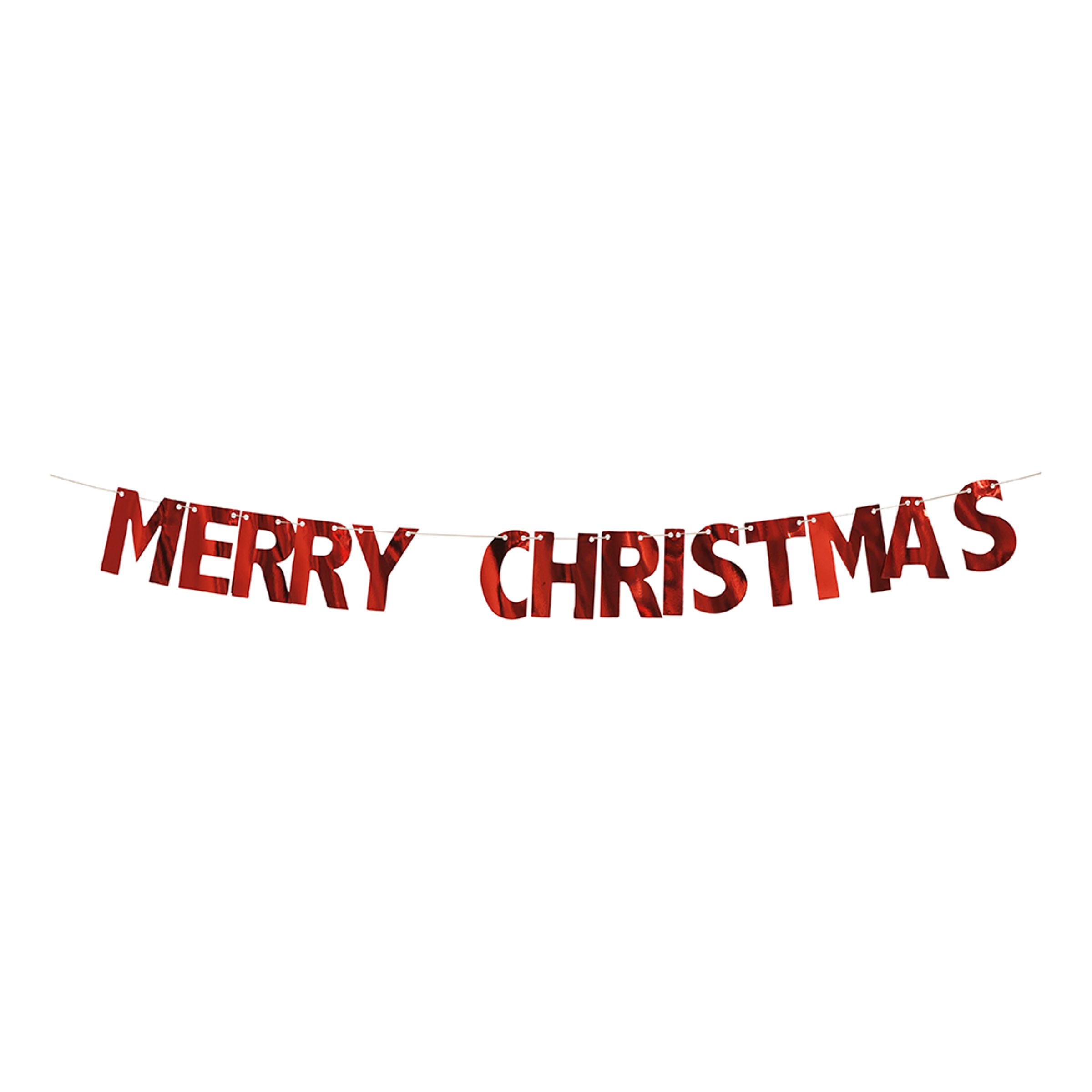 Girlang Merry Christmas Röd är en röd bokstavsgirlang som bildar orden "Merry Christmas". Girlangen är tillverkad i papp och den är 3 m lång. Den kan enkelt hängas upp mellan två skruvar eller med hjälp av lite tejp.