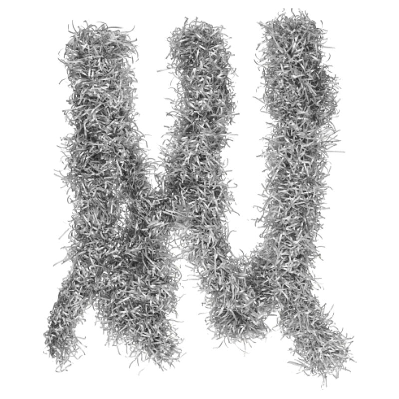 Girlang Silver består av en girlang av strimlat papper där ena sidan av pappret är dämpad silver och andra är matt grå. Girlangen mäter två meter lång.