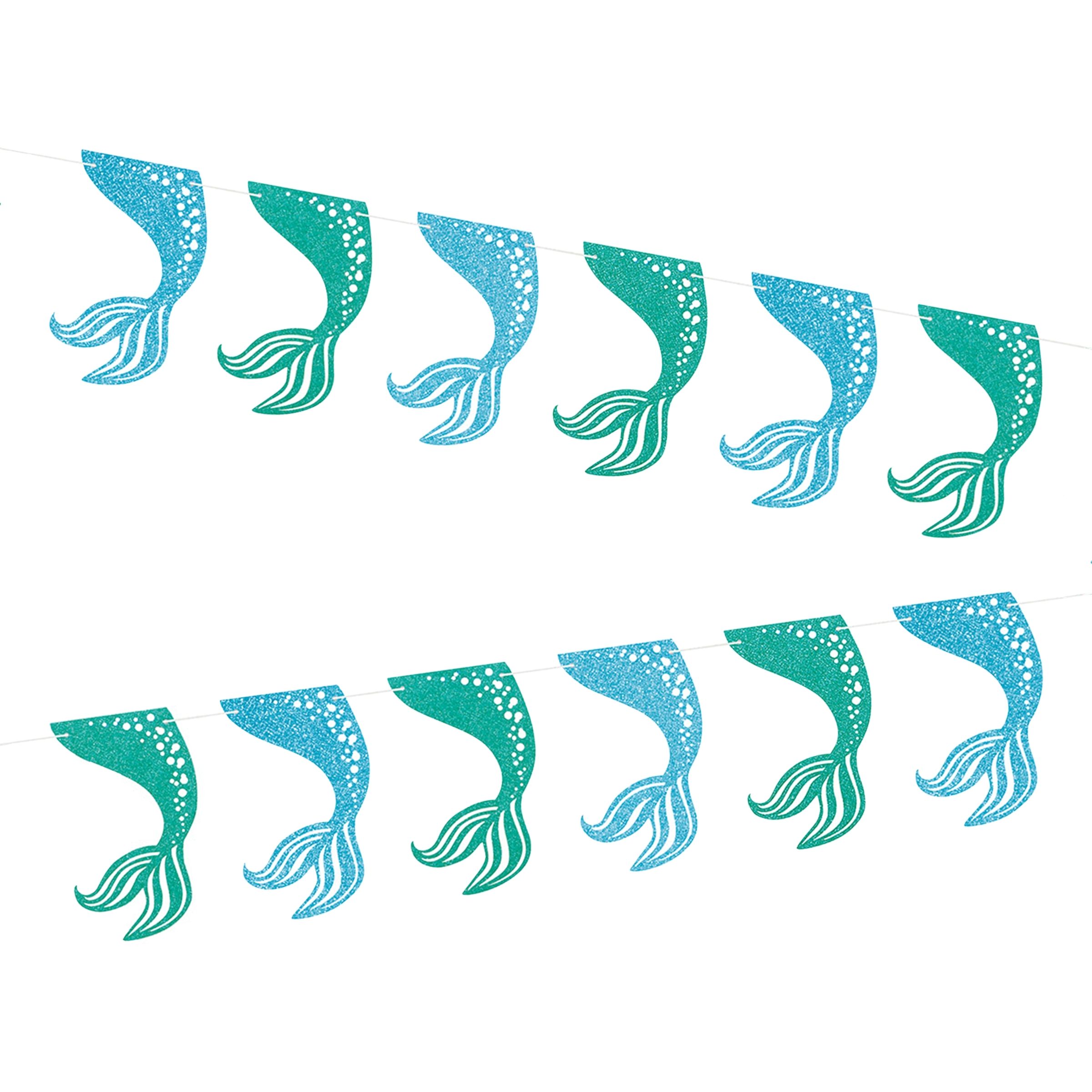 Girlang Sjöjungfru är en girlang med vimplar som ser ut som sjöjungfruns fena. Perfekt på havsfesten! Girlangen kommer i papper och är enkel att hänga upp mellan två krokar.