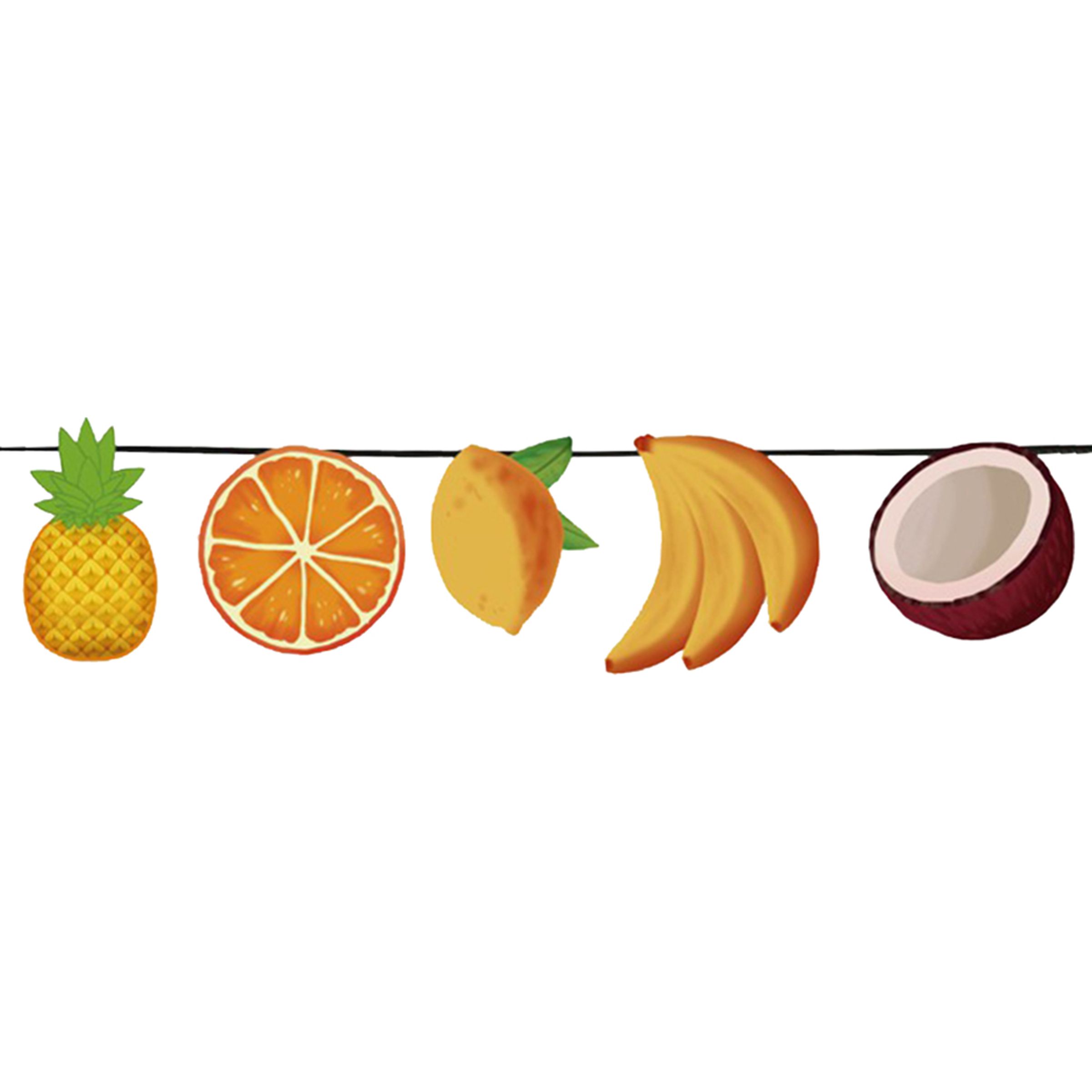 Girlang Tropiska Frukter är en inbjudande girlang med kokosnötter, bananer, citroner, apelsiner och ananas. En fruktig girlang som passar perfekt till hawaiifesten, tropiska partyt eller sommarfesten. Bara att hänga upp på passande ställe med egen tejp eller liknande.