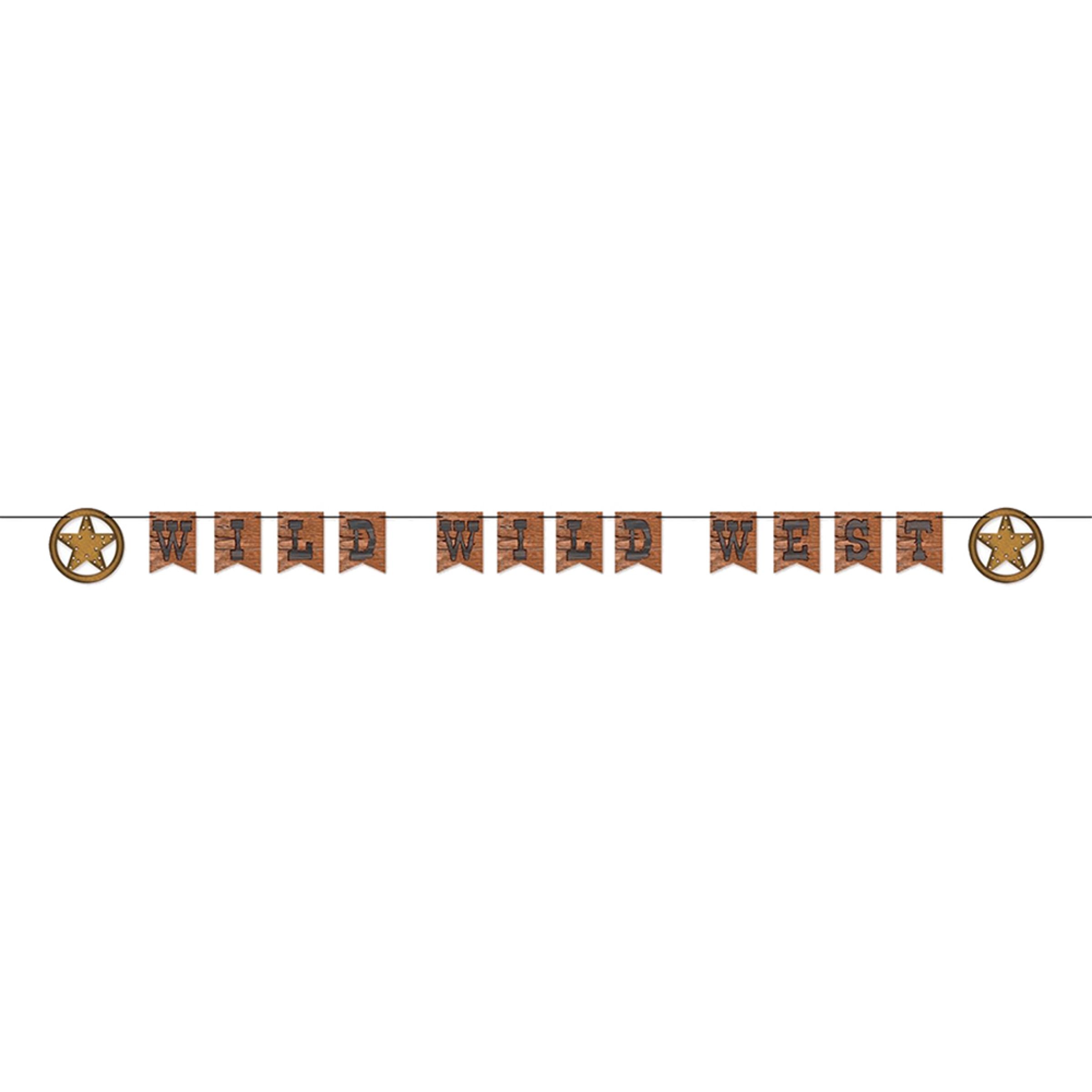 Bjud dina kompisar på ett kalas med vilda västern-tema! I vilda västern red cowboys runt på prärien med sin hästar, sheriffen försökte ta fast alla tjuvar och banditer och på stadens saloon kunde man få stadens skvaller och något att dricka. Skapa en härlig kalasstämning i rummet med den här girlangen i vilda västern-tema.