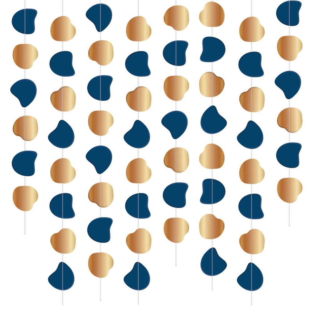 Girlanger Hjärtan Mörkblå & Guld består av 8 stycken hjärtgirlanger i skimrande mörkblått och guld på båda sidorna.