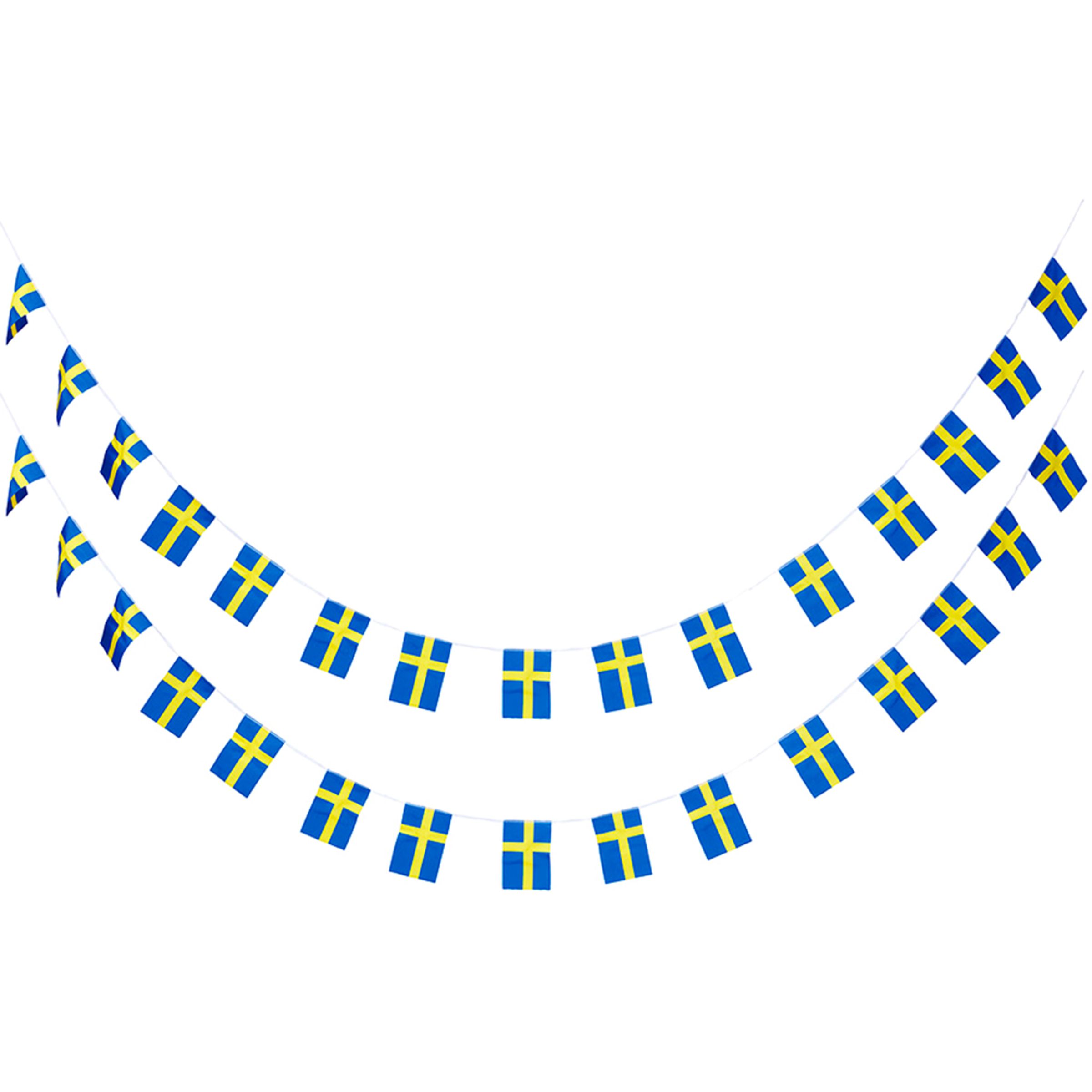 Vankas det nåt festligt ståhej i svensk anda kommer dessa två girlanger med små svenska flaggor garanterat bidra till en härlig stämning i festlokalen!