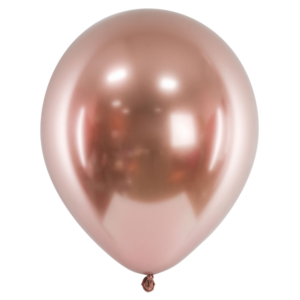 Glansiga Latexballonger Roséguld omfattar 10 stycken glansiga ballonger i roséguld. Ballongerna är tillverkade i latex och blir ca 30 cm stora.