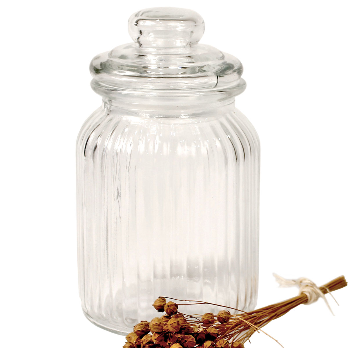 Denna eleganta glasburk med glaslock har ett räfflat mönster och en tät förslutning som håller innehållet fräscht. Perfekt som förvaringsburk i glas för allt från kaffe till pasta. En tidlös burk för torrvaror i köket.