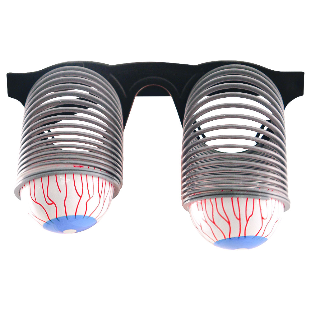 Glasögon med Hängande Ögon omfattar ett par svarta maskeradglasögon av plast med hängande ögon. Glasögonen är ca 12 cm breda och passar vuxna.