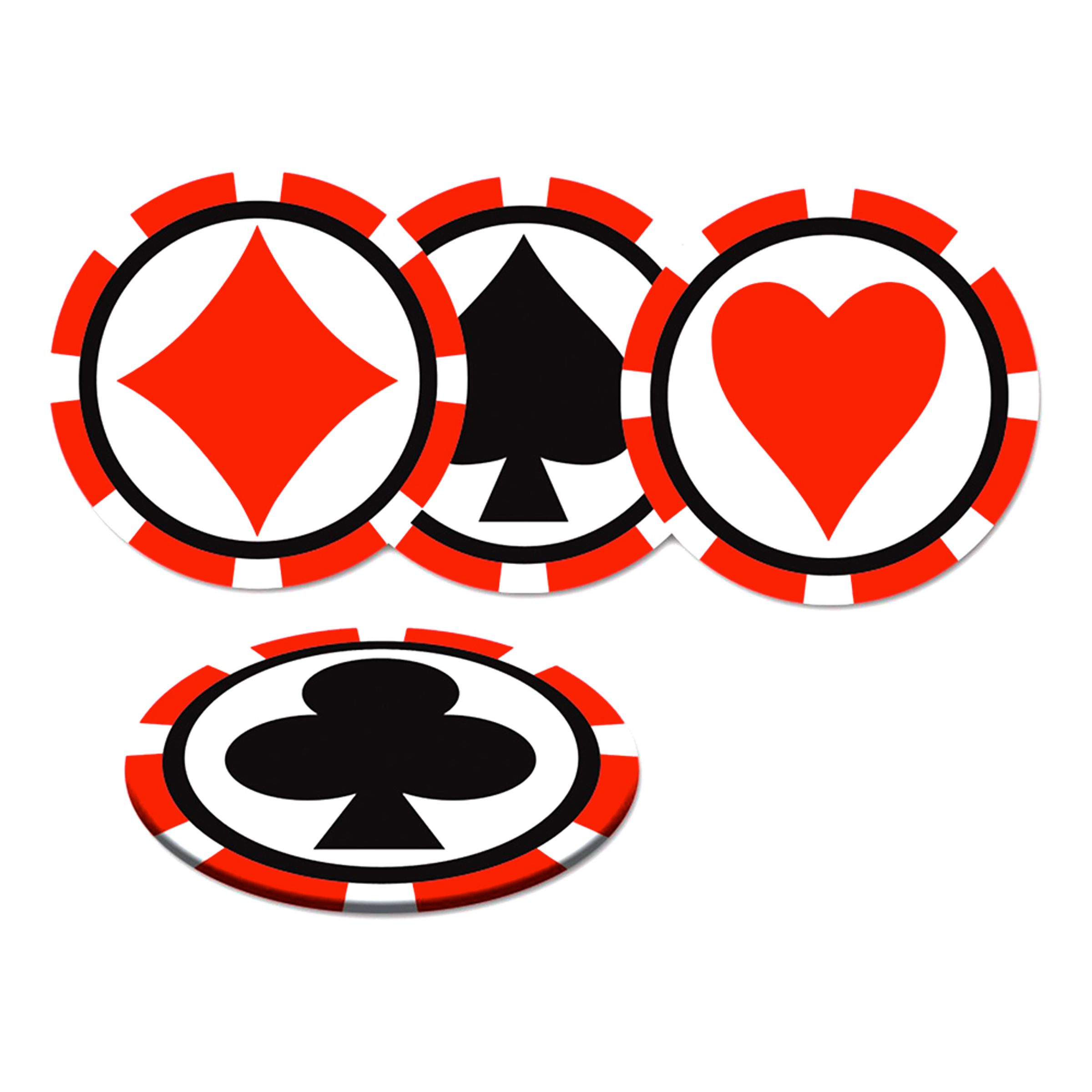 Glasunderlägg Casino inkluderar åtta stycken glasunderlägg med kasinotema. Glasunderläggen är röda, svarta och vita med motiv av hjärter, klöver, spader och ruter.