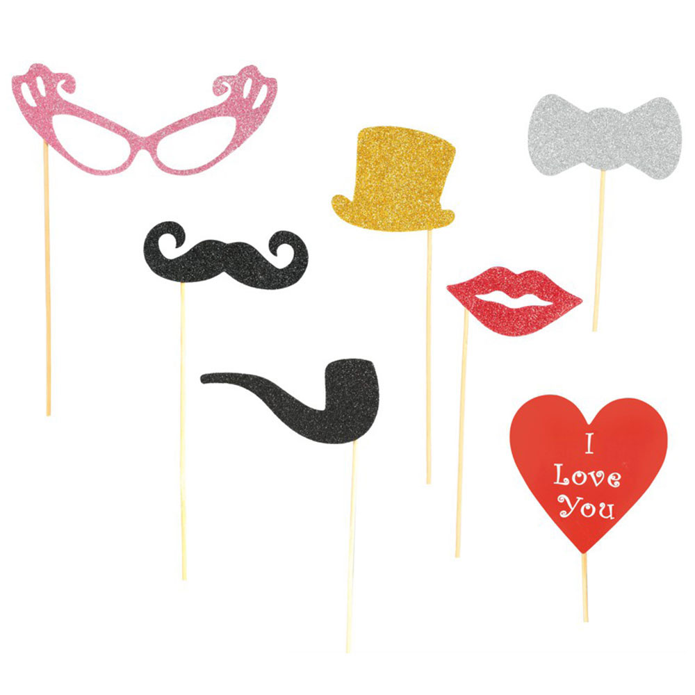 – Fotorekvisita i olika former med glitter.