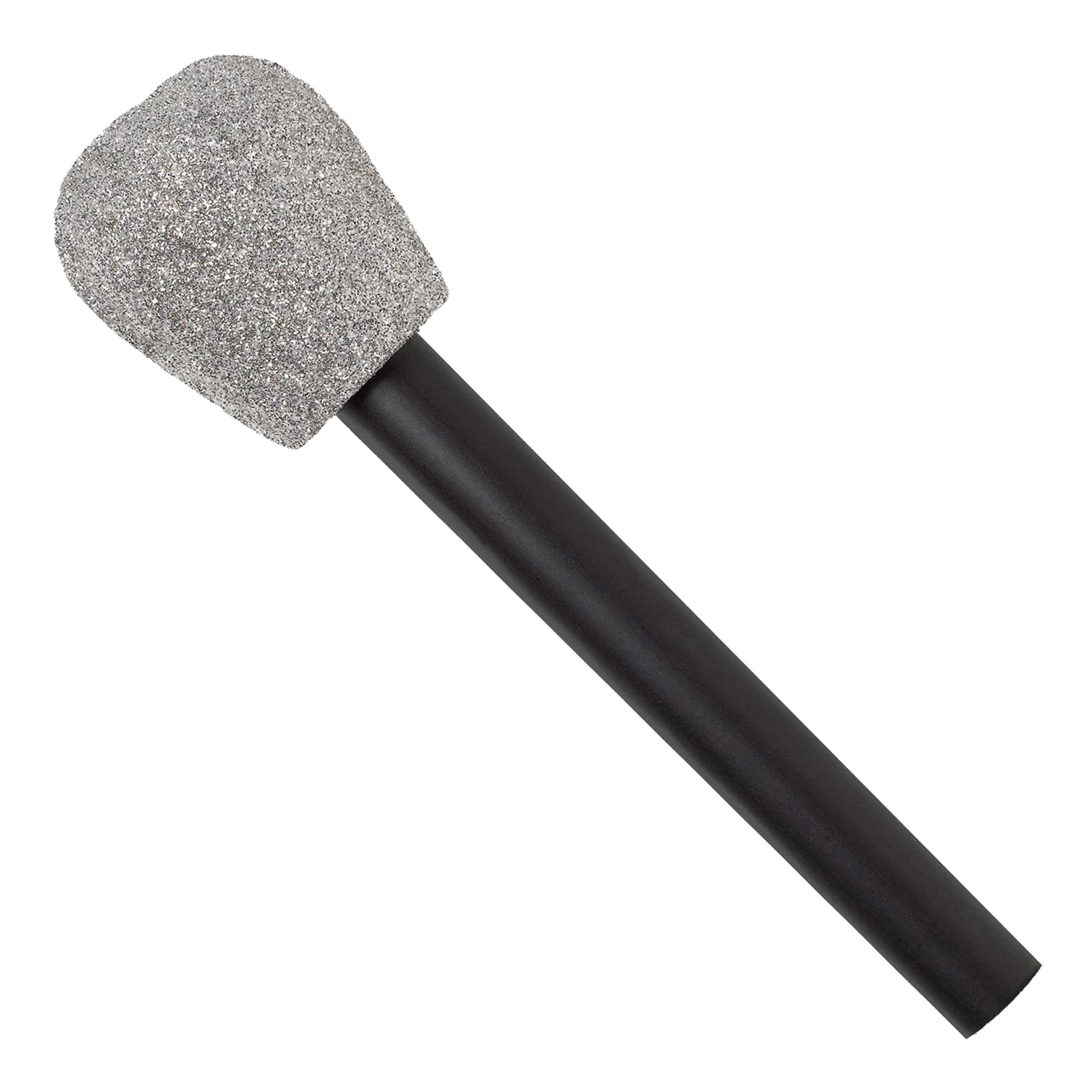Mikrofon Silver Glitter är en glittrig mikrofon i silver som blir ett roligt tillbehör till anna dina maskeraddräkter med musik- eller schlagertema.