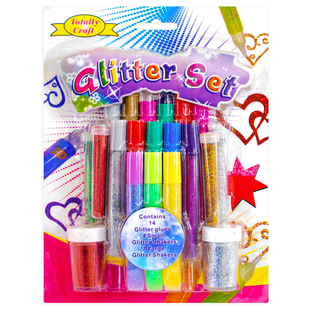 Få ditt pyssel att stråla med vackert glitter! Med detta glitter set med både glitterlim och lösglitter kan du på ett enkelt och riktigt roligt sätt få till fina glitter detaljer och effekter till allt ditt pyssel. Du kan exempelvis skapa häftiga 3D-effekter med glitterlimmet eller få hela ditt konstverk att skimra riktigt snyggt med lösglittret. Ett fantastiskt glitter set för alla som älskar glittrande pyssel.