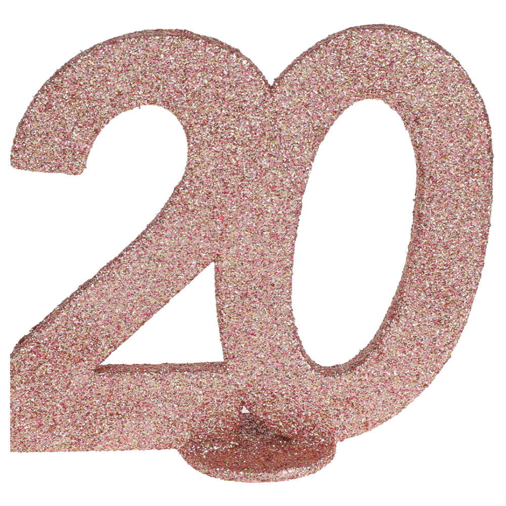 Glittrande 20-års dekoration i roseguld som blir en snygg detalj till 20-års fest. Dekorera med den precis hur du vill och skapa en riktigt fin bordsdekoration på nolltid. Helt enkelt perfekt för dig som ska bjuda in till 20-års fest och söker en passande dekoration i glittrande roseguld.