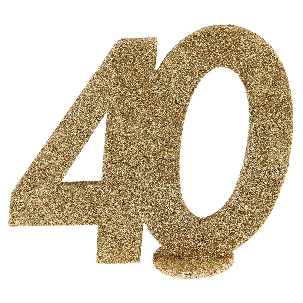 Skapa en riktigt fin bordsdekoration till din 40-års födelsedag med hjälp av denna fina glitter-dekoration! Festlig 40-års dekoration i glittrande guld som genast livar upp hela din fest. Helt enkelt en perfekt dekoration för dig som ska fylla 40 år och vill fira med ett riktigt härligt firande!