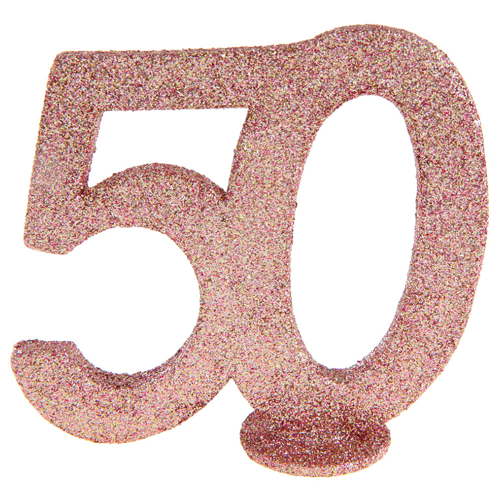 Att fylla 50 är stort så givetvis ska dagen firas med en stor fest! Få till ett riktigt lyckat 50-års firande och dekorera snyggt med denna fina 50-års dekoration i glittrande roseguld. Supersnygg 50-års dekoration som bland annat blir en dekorativ bordsdekoration till dukningen. En utmärkt dekoration till varje 50-års fest i skimrande roseguld!