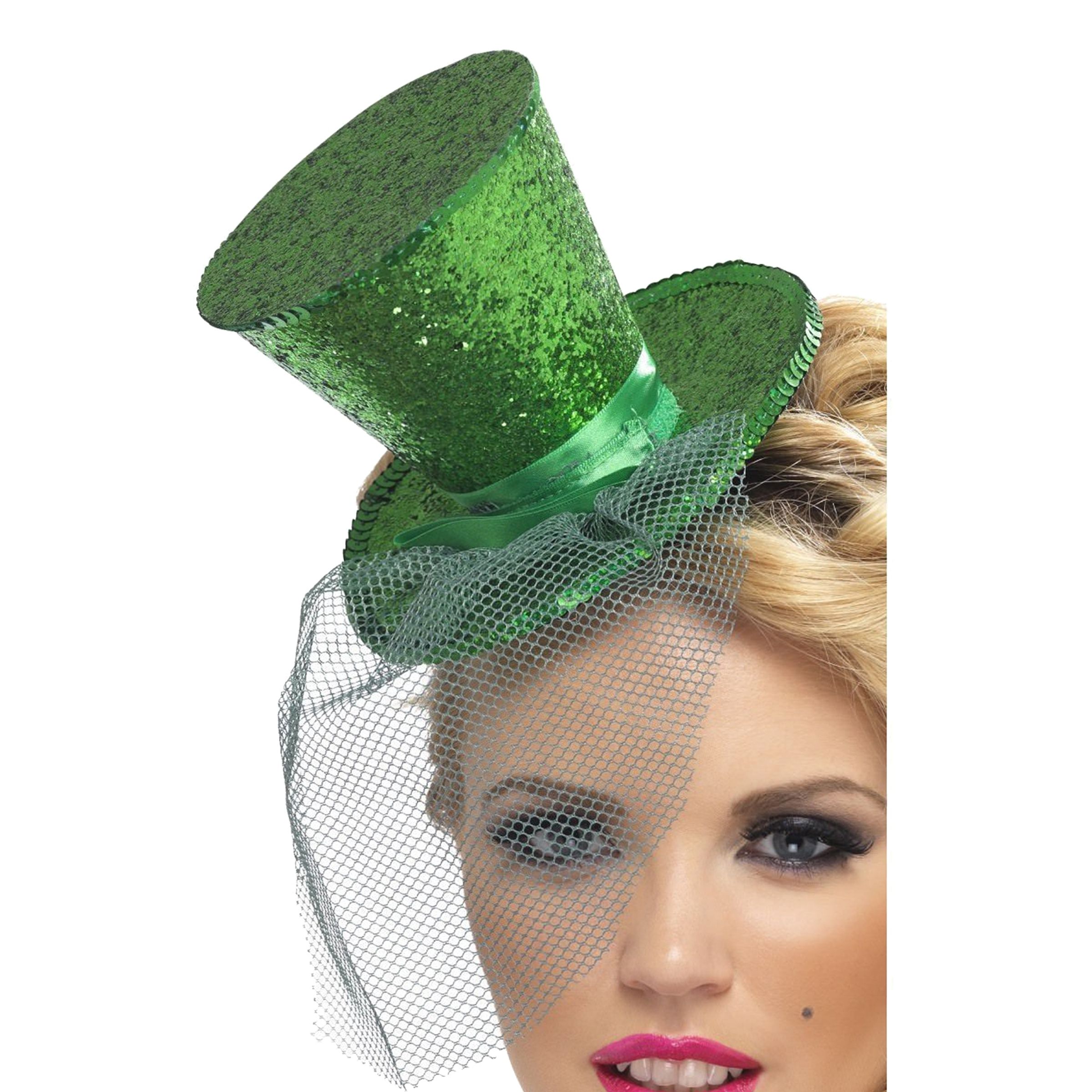 Glittrig minihatt med flor. Hatten fästs enkelt i håret med medföljande diadem. Välj mellan flera olika färger.