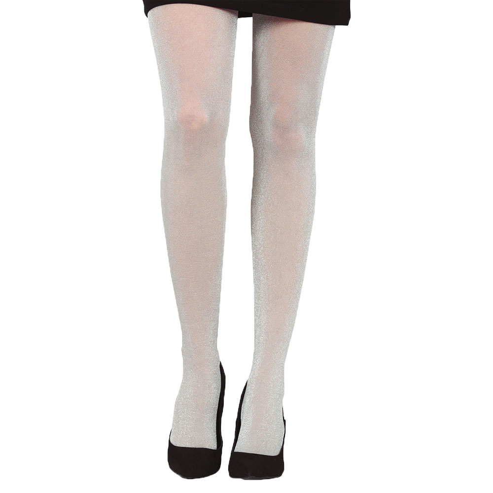 Se extra festfin ut till nästa firande med dessa silvriga glitter-strumpbyxor! Riktigt läckra, glittriga strumpbyxor i silver som helt klart ger dig en utstickande look. Bär dem tillsammans med din festklädsel eller din maskeraddräkt och bli festens snyggaste gäst!