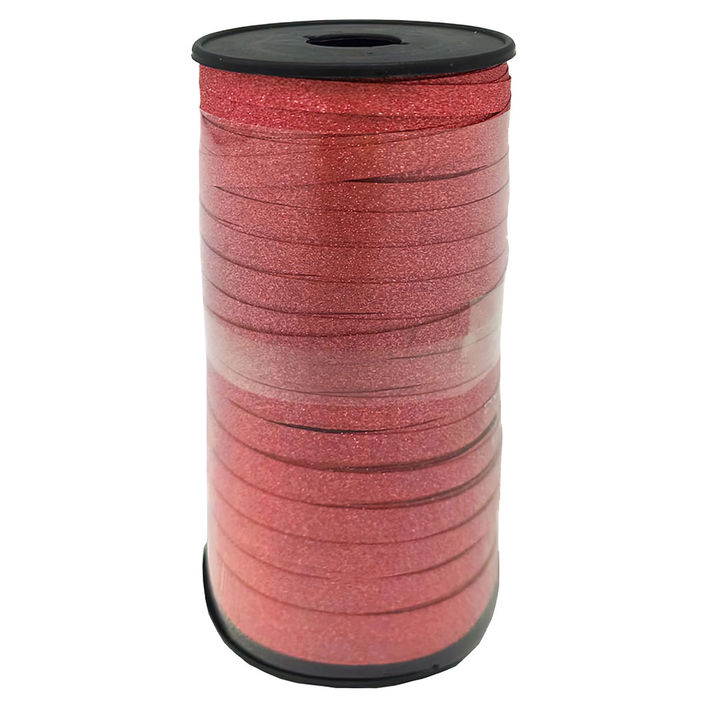 Glittrigt Presentsnöre Röd omfattar ett glittrigt ballong- och presentsnöre i rött. Snöret är ca 0,5 cm brett och 92 meter långt.