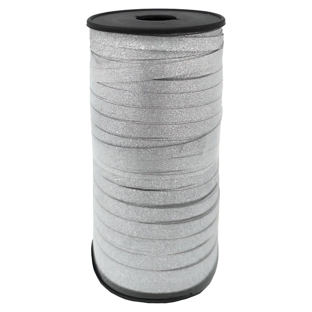 Glittrigt Presentsnöre Silver omfattar ett glittrigt ballong- och presentsnöre i silver. Snöret är ca 0,5 cm brett och 92 meter långt.