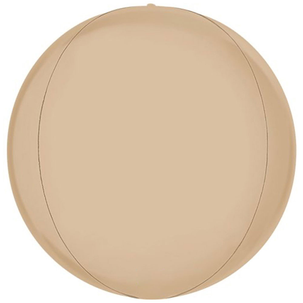 Globe Folieballong Satin Kräm omfattar en klotrund folieballong i den ljusa nyansen kräm. Ballongen försluter sig själv och kan fyllas med antingen luft eller helium.