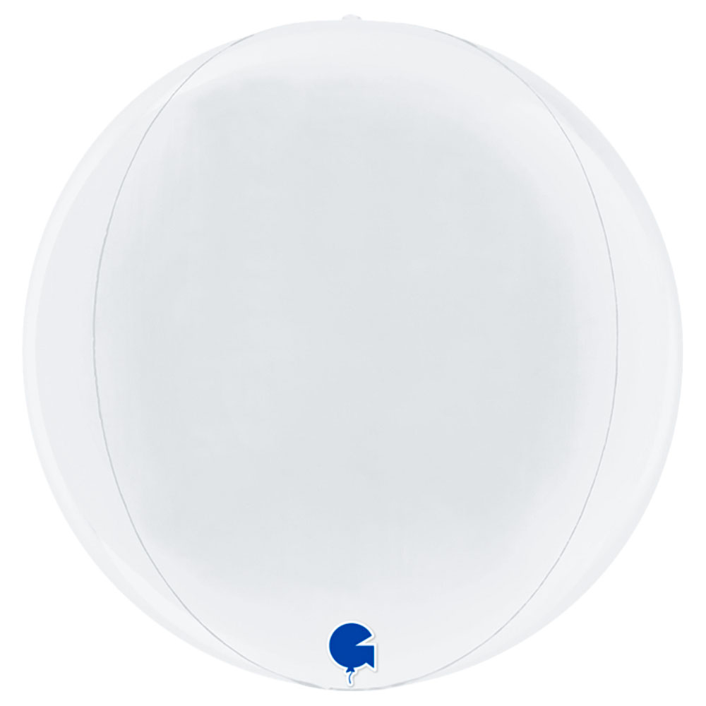 Globe Folieballong Vit omfattar en vit klotrund folieballong som mäter ca 29 cm i diameter uppblåst. Ballongen är självförslutande och fylls med luft eller helium.