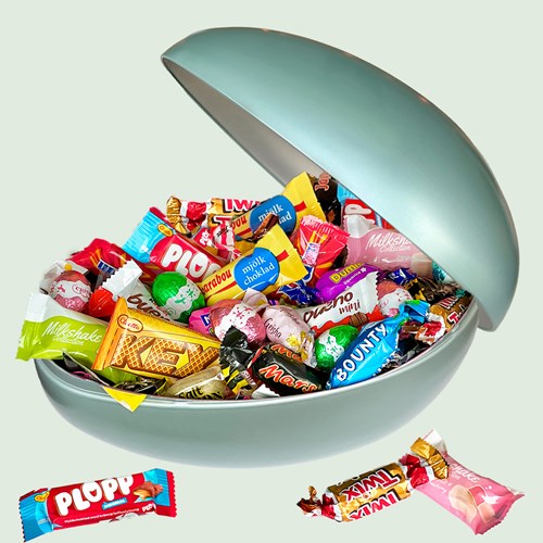 Gör någon riktigt glad och överraskad med ett stort, godisfyllt påskägg i plåt. För den som får detta blandgodisägg väntar hela 1 kg godis med inslagna favorit-godissorter. Perfekt mängd att dela med familjen och kompisar eller för att unna dig själv såklart!