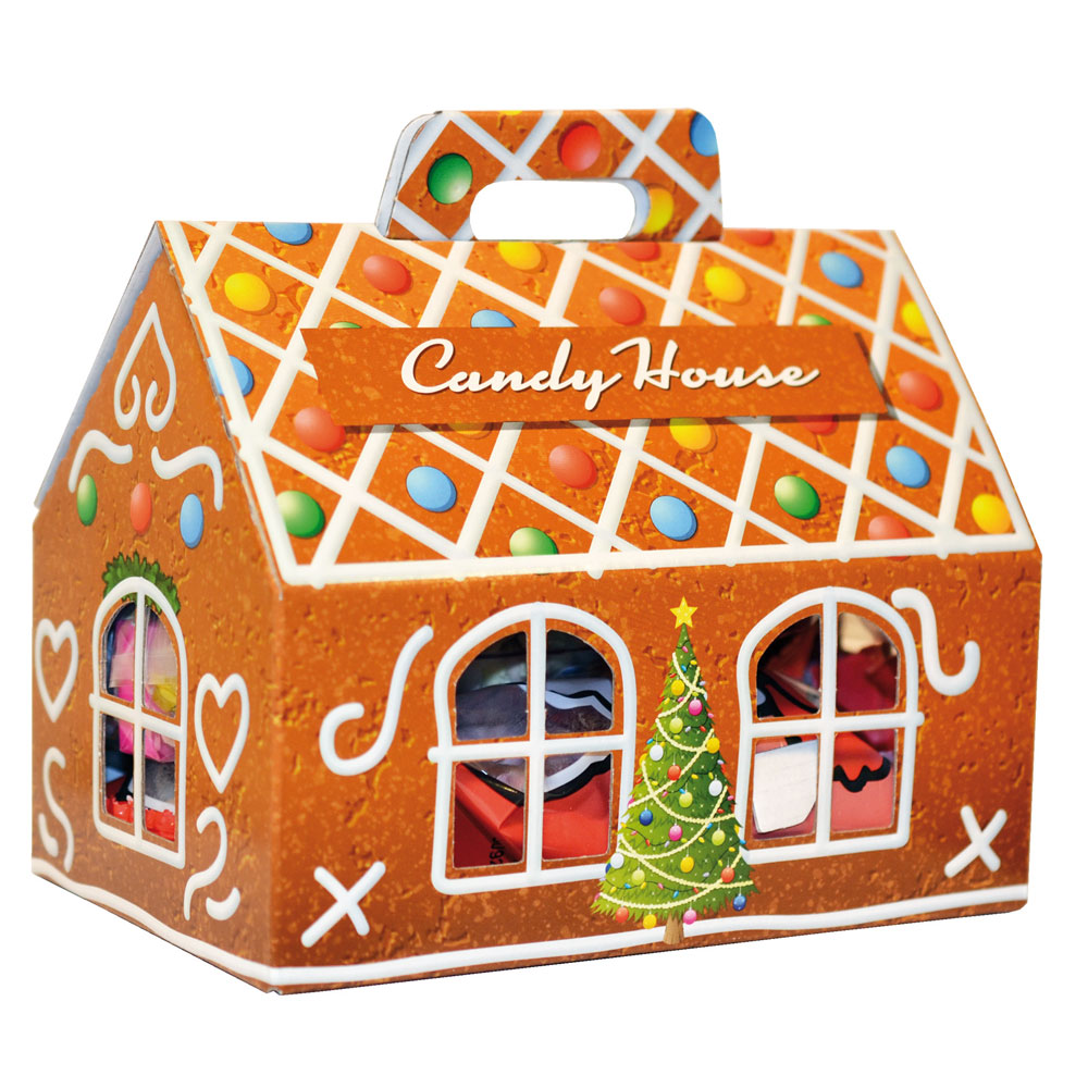 Jul Godishus 225g består av ett pepparkaks form liknande hus i kartong med ihåliga fönster och med handtag på toppen. Godis som medföljer i förpackningen är bland annat choklad snögubbar, polkagriskäppar, fruktkola, godisklubba samt gelegodis.