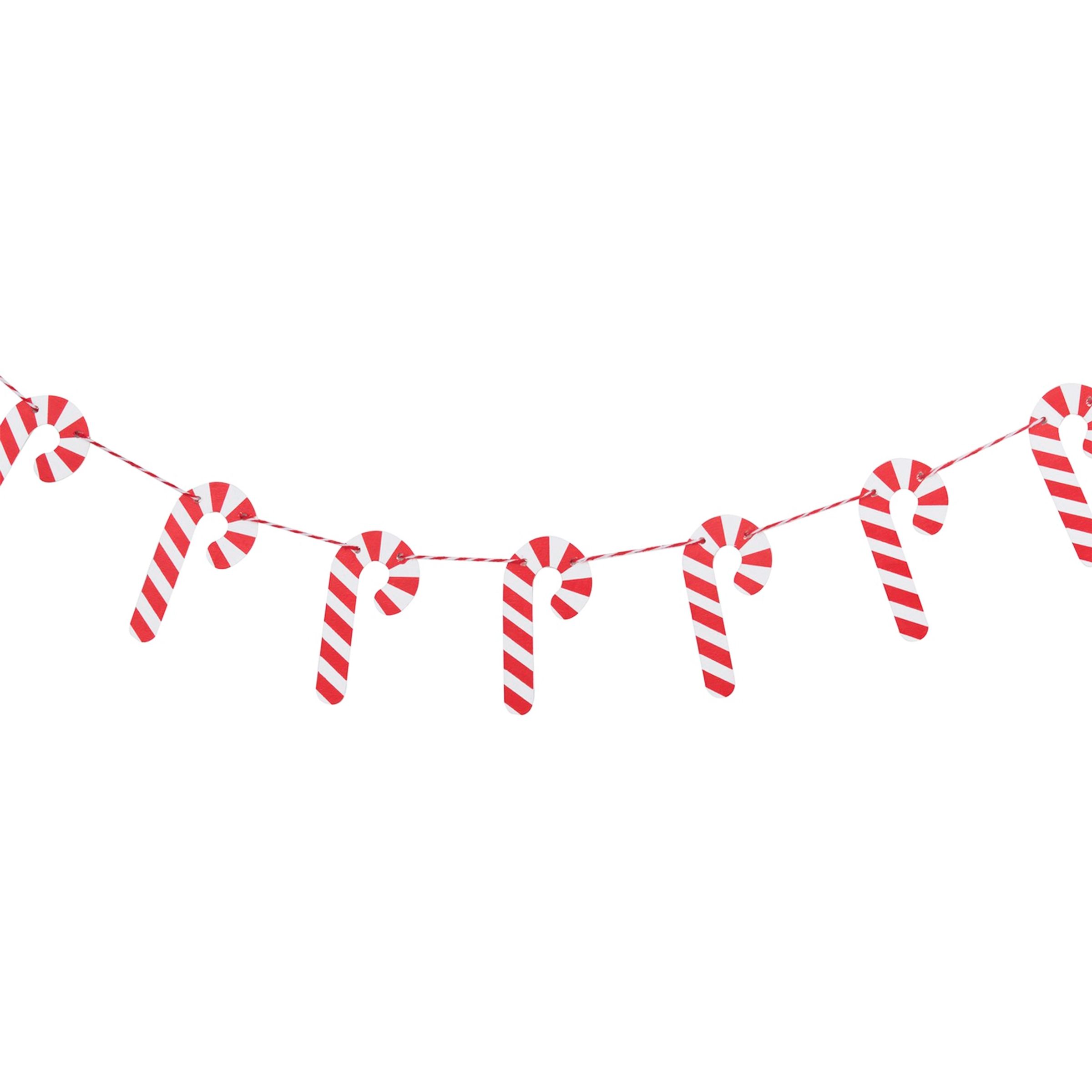 Godiskäpp Träflaggspel är en härlig girlang som består av trä-vimplar formade som julkäppar trädda på ett garnsnöre med polkagris-färger. Girlangen häng enkelt upp med hjälp av en bit tejp eller liknande.