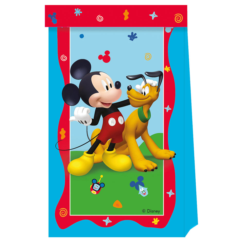 Godispåsar Musse Pigg Rock the House omfattar 4 st godispåsar med färgglatt motiv av Musse Pigg och hunden Pluto. Påsarna är i papp och mäter ca 22 x 13 cm.