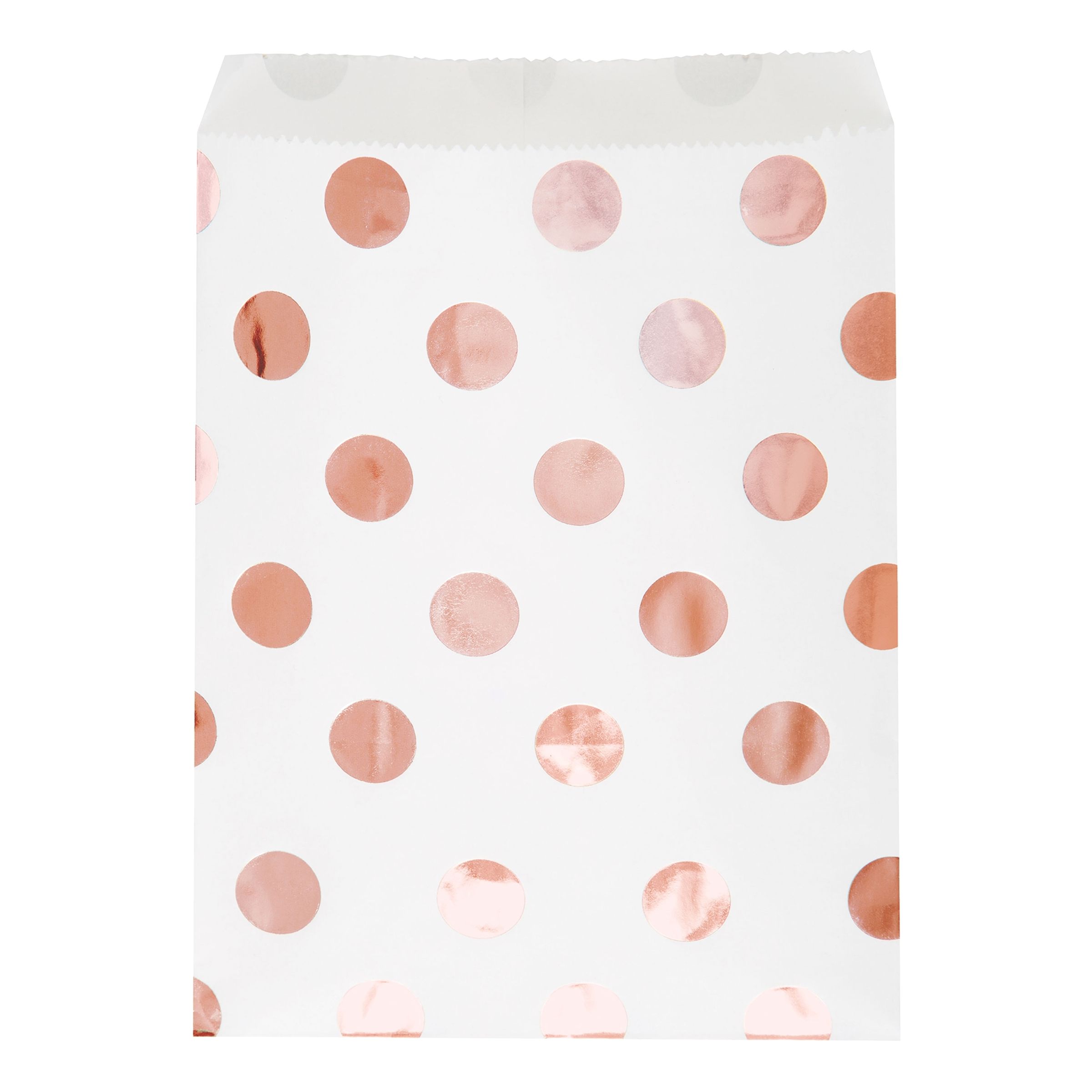 Godispåsar Vita med Prickar innehåller 8 st godispåsar, påsarna är vita med roséguldiga prickar. Påsarna fungerar utmärkt till godis eller liknande.