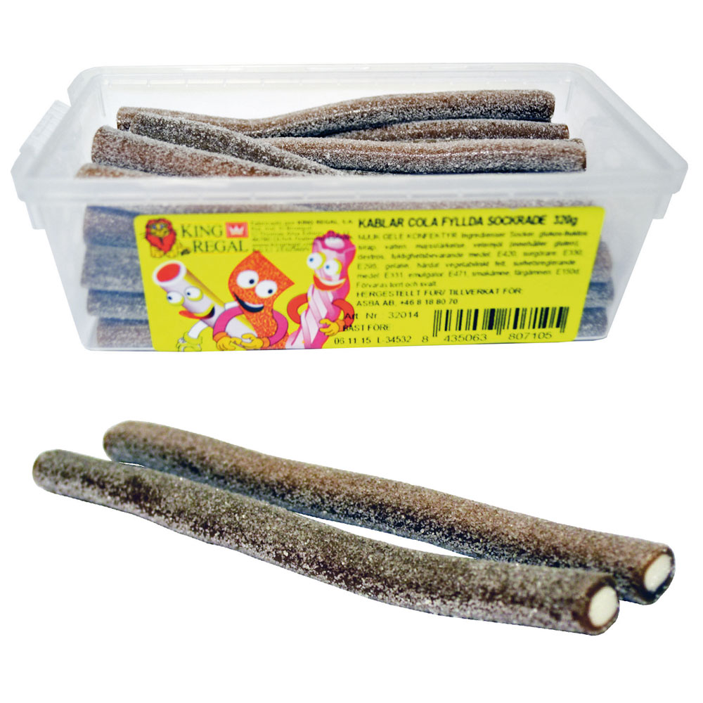 Kablar Cola 20st består av en låda med godis kablar med cola smak.