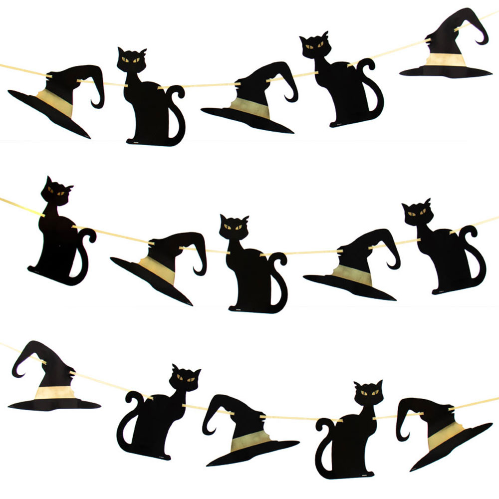 Om du är ute efter en riktigt snygg och alldeles lagom kuslig Halloween dekoration så kommer denna Golden Witch girlang passa dig helt perfekt. Den här fina girlangen med katter och häxhattar kan enkelt hängas upp mot exempelvis en vägg eller i taket för att snabbt och smidigt få till den rätta stämningen till festen. Häng upp Golden Witch girlangen antingen som den är på egen hand eller tillsammans med andra matchande Halloween dekorationer.