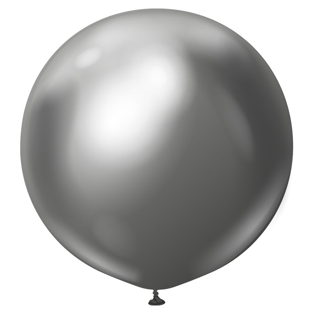 Grå Gigantiska Chrome Latexballonger Space Grey 2-pack omfattar två stycken superstora latexballonger i grått med skimrande chrome-effekt. Ballongerna fylls med luft eller helium och blir ca 90 cm stora.