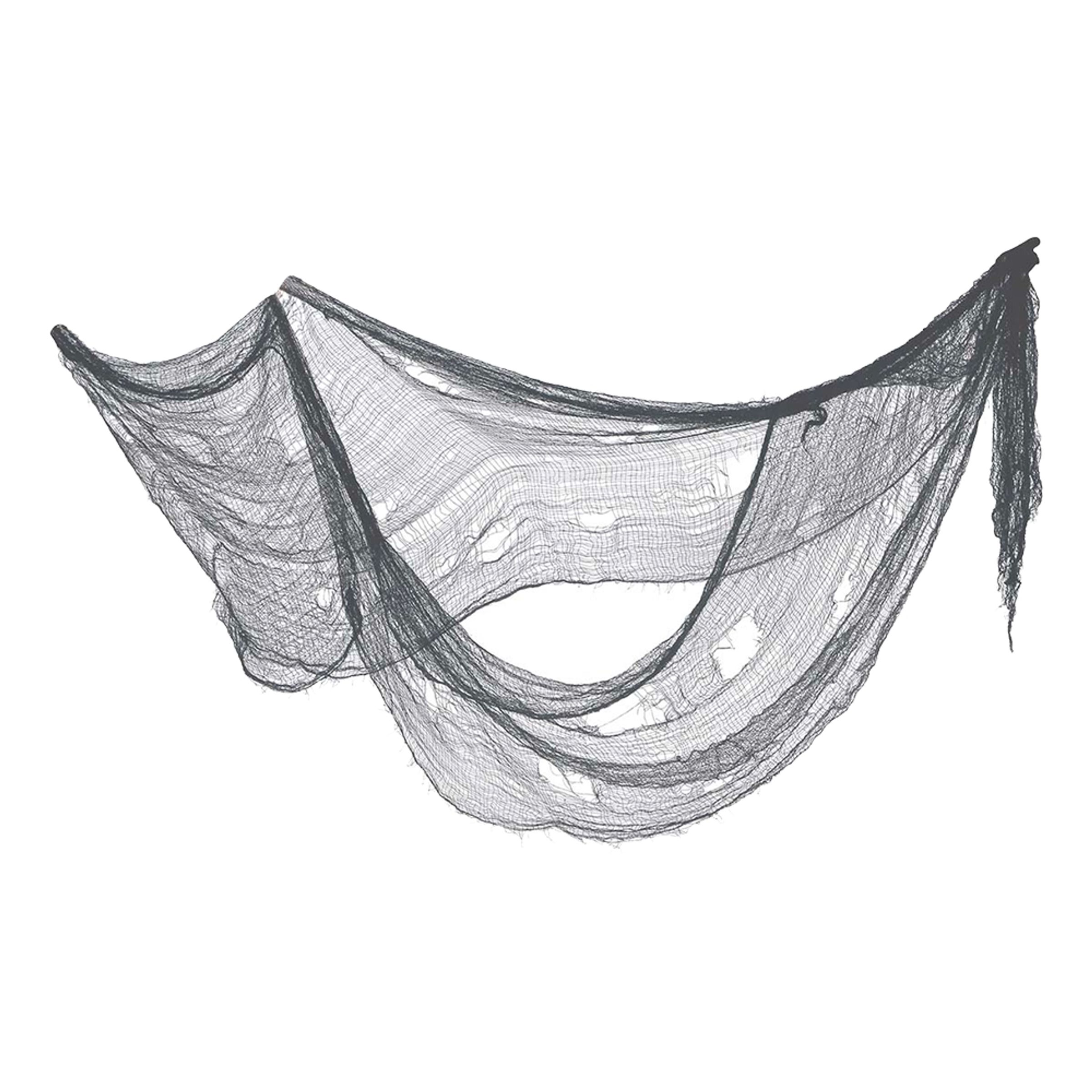 Grått Dekorationstyg Halloween är en nätliknande tyg som passar utmärkt att hänga upp på väggen eller i taket som en kuslig dekoration till halloweenfesten. Tyget hängs enkelt upp med hjälp av ett par krokar eller liknande.
