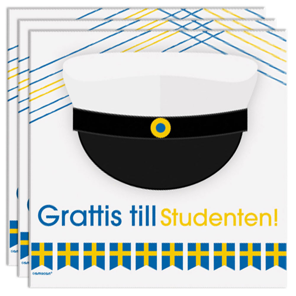 Gör din studentdukning lite extra snygg med dessa fina student servetter! Duka fram dessa servetter till varje gäst och håll din studentmottagning eller studentfest ren och fri från kladd och smuts. Utmärkta studentservetter som även blir en fin detalj till din studentdukning.