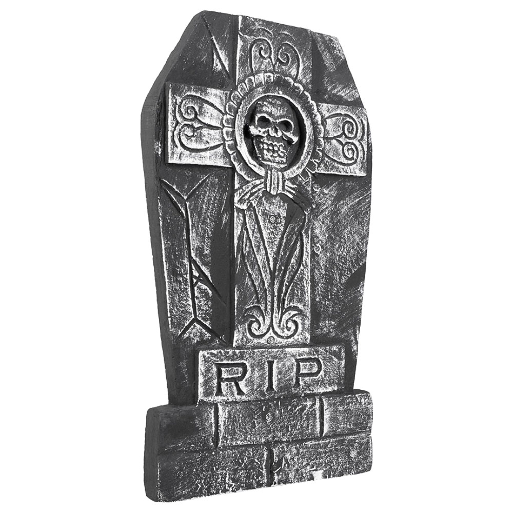Få till en riktigt kuslig halloween-dekoration med denna häftiga gravsten! Med den här gravstenen kan du enkelt skapa en superläskig dekoration som utan tvekan kommer att sprida en riktigt läskig stämning runt hela ditt halloween firande. Sätt upp gravstenen och dekorera den med spindelnät och kanske ett läskigt skelett eller köp flera stycken och skapa en hel kyrkogård fylld av läskiga dekorationer.