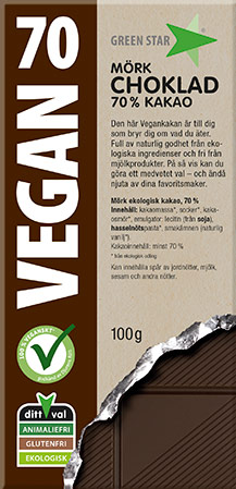 Denna fantastiska produkt gör det möjligt att äta choklad med gott samvete, för lyssna här! Den är både ekologisk och vegansk! Green star's mörka choklad har en hög kakaohalt och är gjord på en kakao- och rispulverblanding.