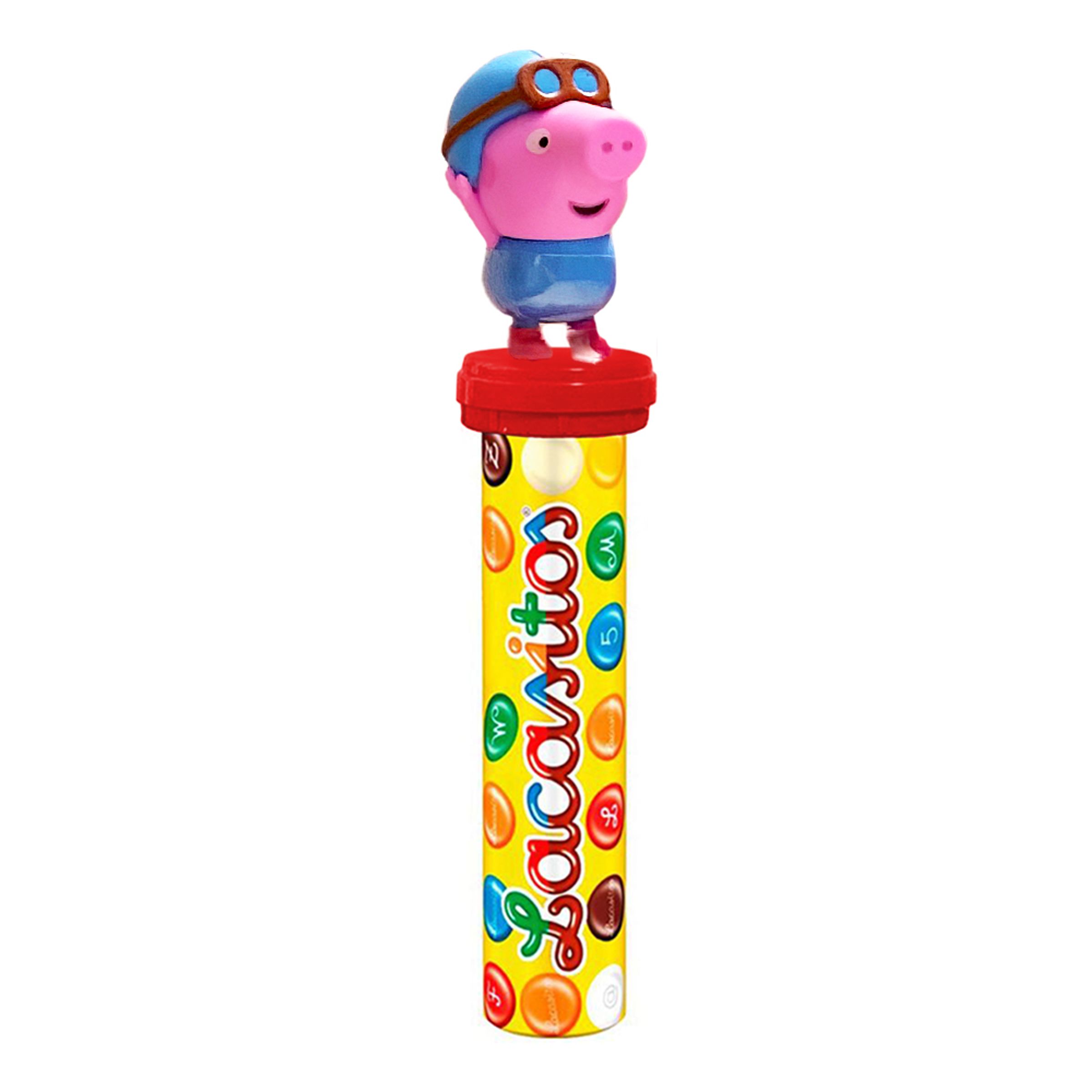 Greta Gris Godis består av små dragerade chokladknappar i olika färger. Varje förpackning kommer med en lite Greta Gris-figur som finns i tre olika varianter som säljes osorterade – vilken variant du får blir en överraskning!