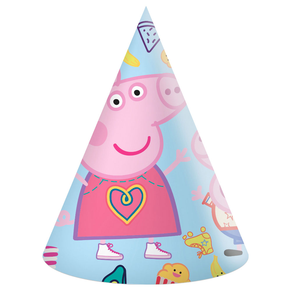På med Greta Gris partyhattar och gör er redo för årets skojigaste fest och tema kalas med favoritgrisen Peppa Pig. Med roliga kalashattar får ni en snygg dukning och skön party stämning, perfekt partyhattar för alla Greta Gris fans och barn som vill ha en festlig kalasdukning och skojigt barnkalas tillsammans med Peppa Pig.
