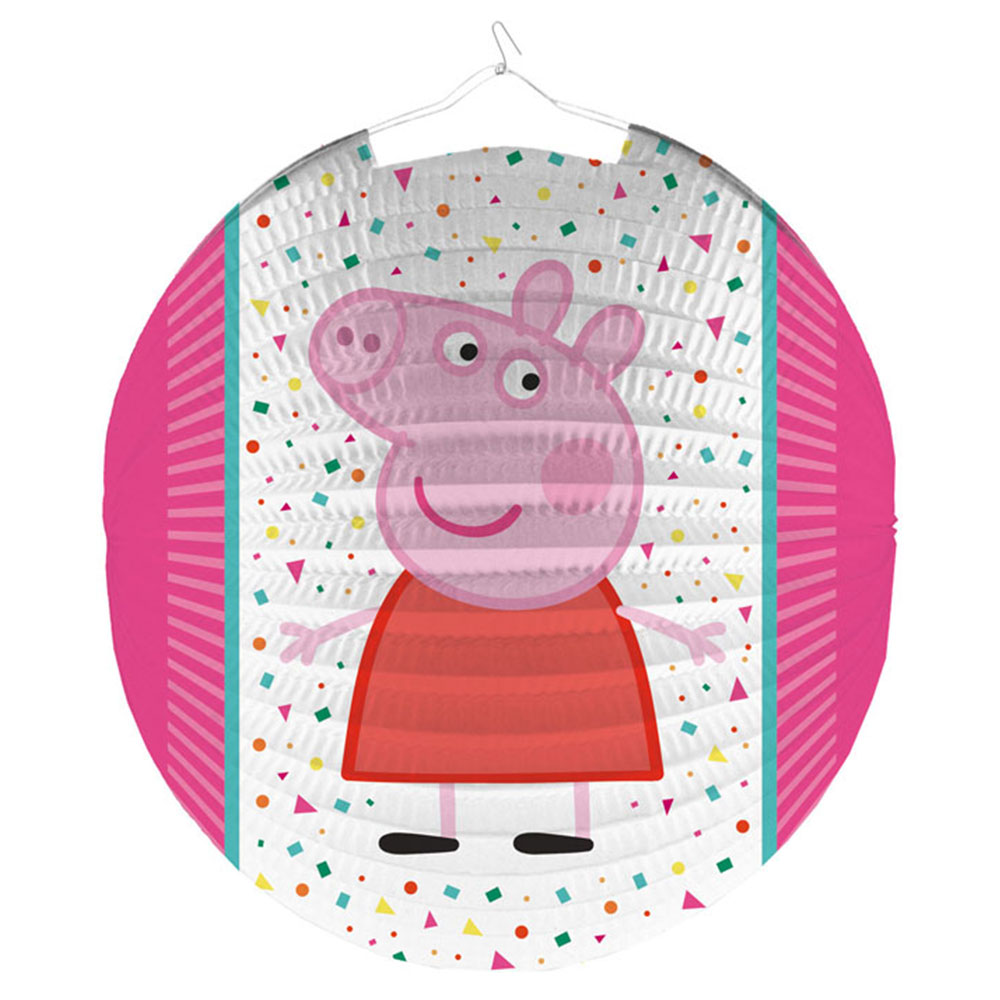 Den här snygga papperslyktan med Greta Gris blir lätt en snygg dekoration på kalaset, både med och utan ljus. På dagen är den en snygg rund hängande dekoration på barnkalaset, på kvällen kan den vara en mysig lykta till barnbordet på festen.