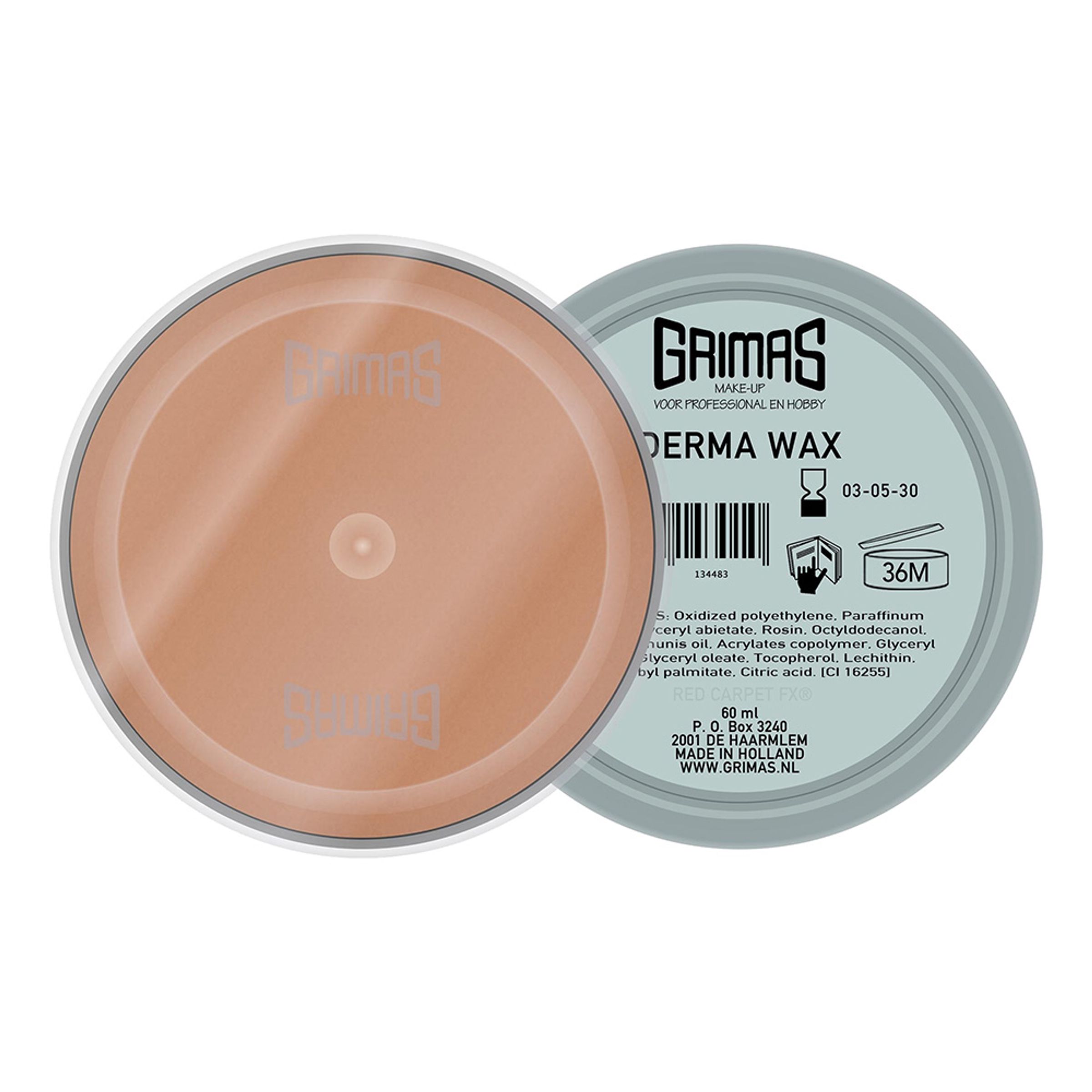 Grimas Derma Vax är en burk transparent vax som enkelt smälter in i huden när du vill skapa en tuff specialeffekt. Vaxet har god elasticitet när det applicerats vilket gör att det passar bra även på rörliga delar av huden. Besök Grimas hemsida för utförliga instruktioner: www.grimas.nl
